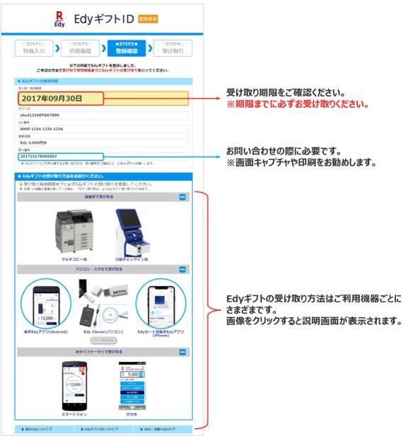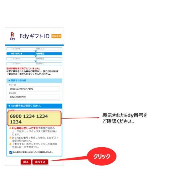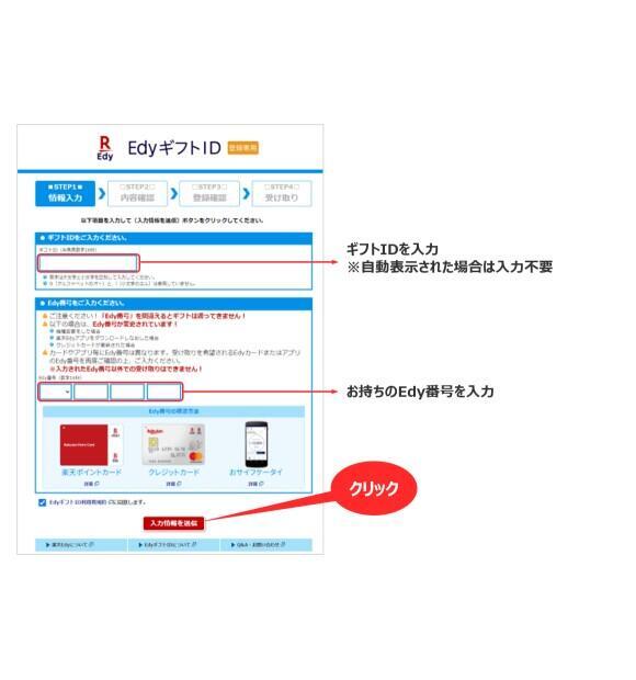 - STEP3 登録サイトにアクセスして、「EdyギフトID」と「Edy番号」を登録します。
