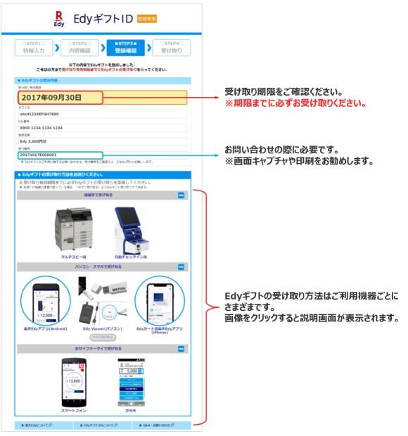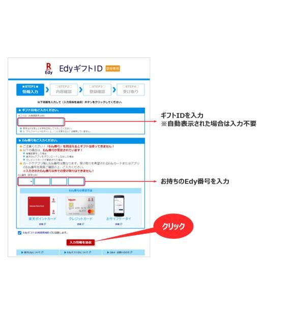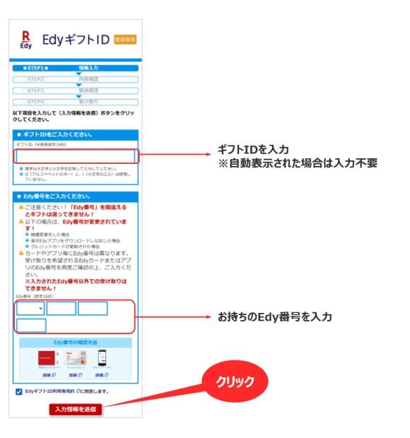 STEP3 登録サイトにアクセスして、「EdyギフトID」と「Edy番号」を登録します。