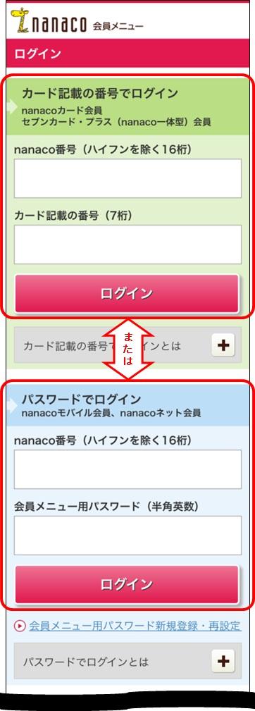 - ※登録したnanaco番号の訂正や取り消しはできませんので、ログイン情報に誤りのないようご注意ください。