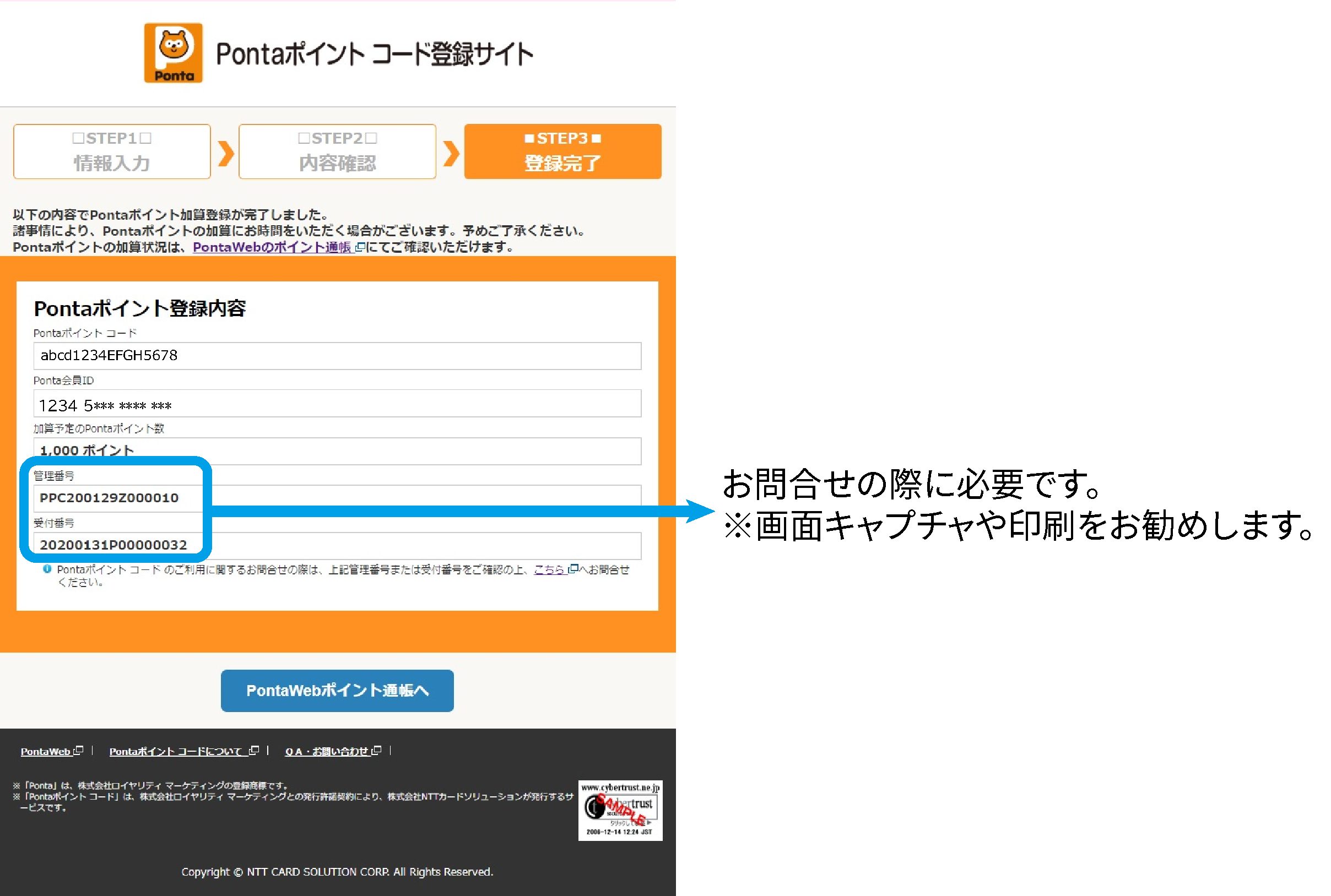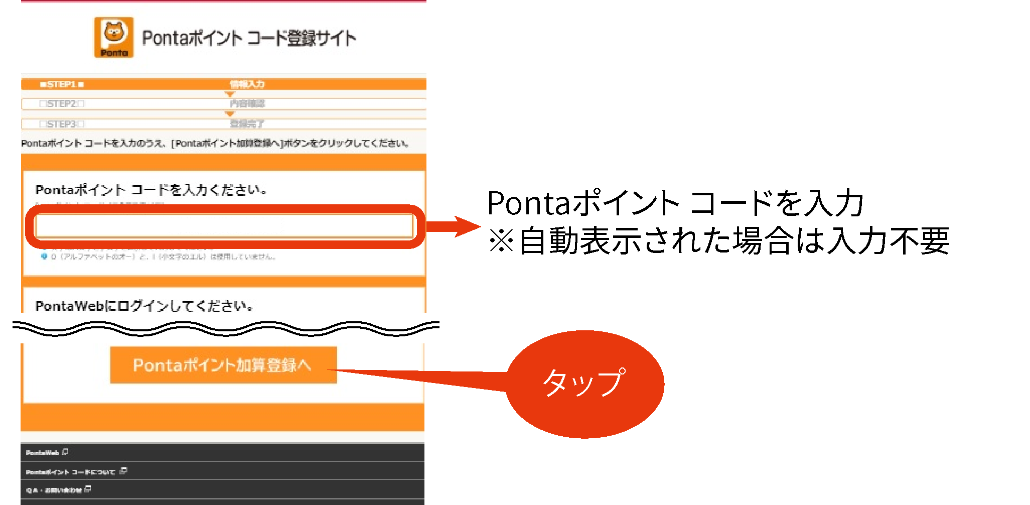 受け取った方が、Pontaポイント コード登録サイトにて、Pontaポイント コードを登録することで、Pontaポイントを受け取れるサービスです。